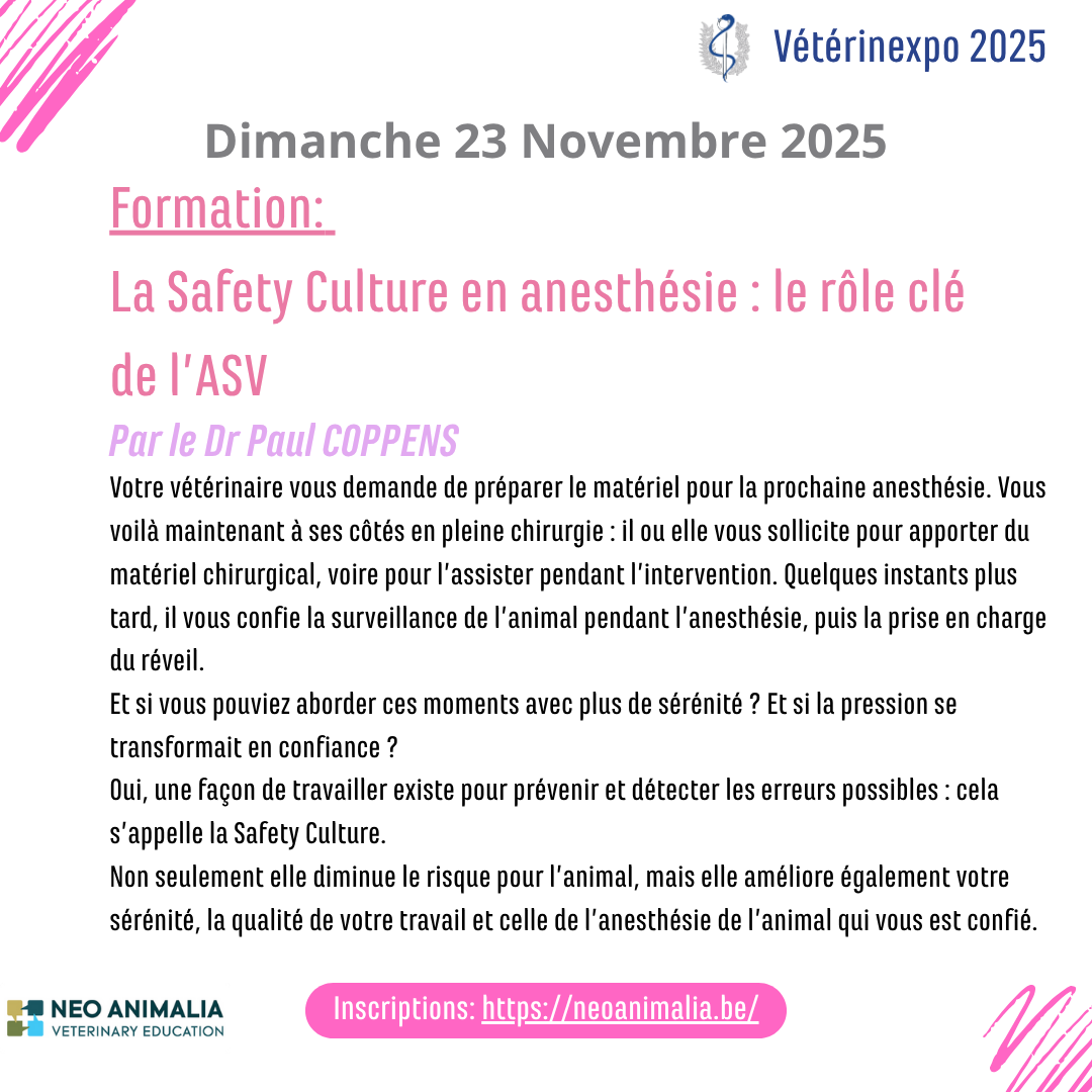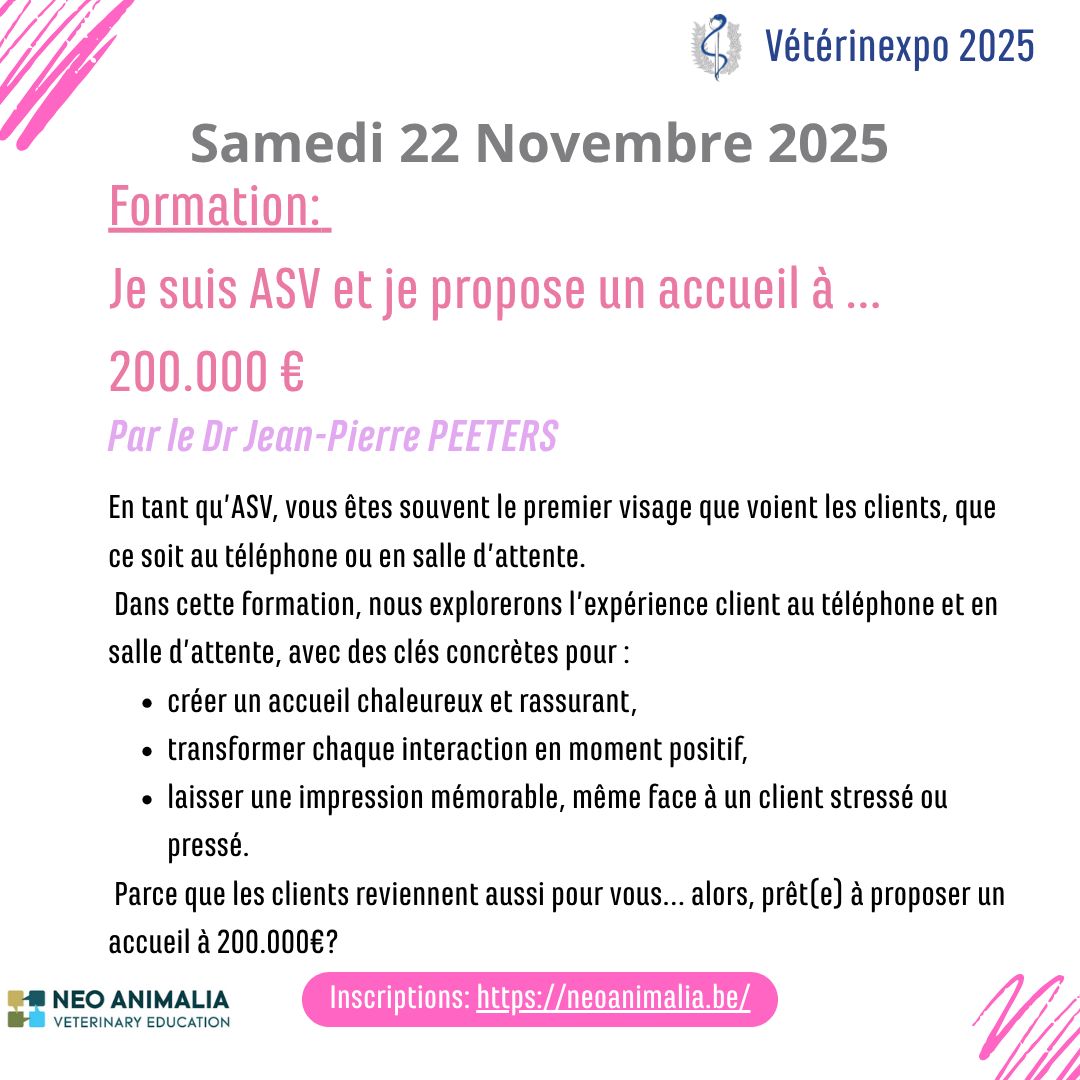 For this 45th edition of the Apfte Expo, S.G.E.M.V asbl offers training courses for Vet nurse on the following topics in collaboration with our Partner Neoanimalia.